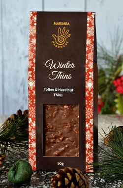 These thins create a perfect harmony of creamy, crunchy and sweet. The caramelised nuts add texture and enhance the caramelised flavour notes of the toffee chocolate. Luxurious and comforting.